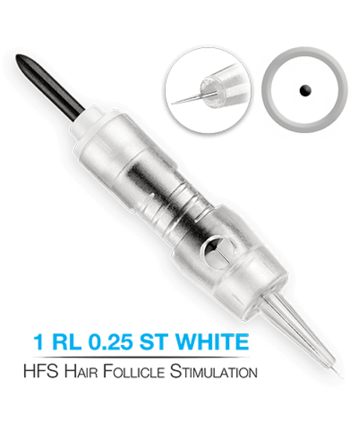 1RL 0.25 ST alb, pentru simularea firului de par, conALBstruit dintr-un singur ac scurt cu diametrul de 0.25 mm, doar pentru micropigmentare scalp;